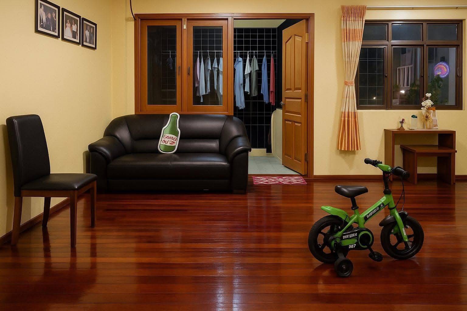 # အခန်းဖွဲ့စည်းပုံပြင်ဆင်ပြီး (ကျွန်းလျှာထိုး ကြမ်းခင်း)