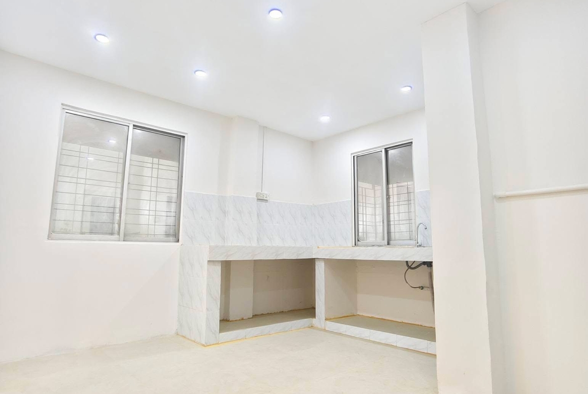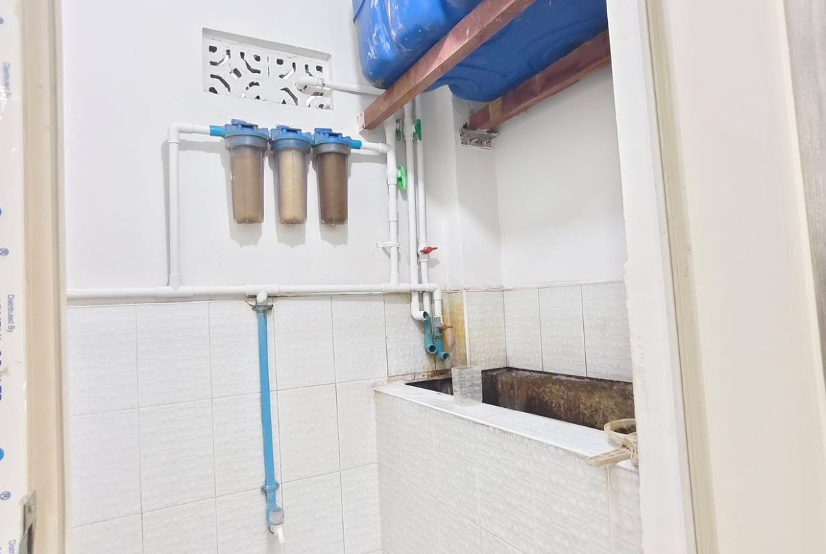 # မီးဖိုခန်း ရေချိုးခန်းအုတ်ကန်ပါ အိမ်သာဘိုထိုင် ကြွေပြားခင်းထား
